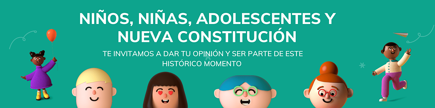 ¿Qué buscamos? Con esta iniciativa queremos fomentar tu participación y la de miles de otros niños, niñas y adolescentes, para que a través de esta plataforma interactiva puedas saber más del proceso constitucional. Opina, sube ideas, vota y delibera para que sus voces sean parte de este momento histórico que Chile está viviendo. Hemos diseñado esta plataforma, especialmente para niños, niñas y adolescentes entre 9 y 17 años.